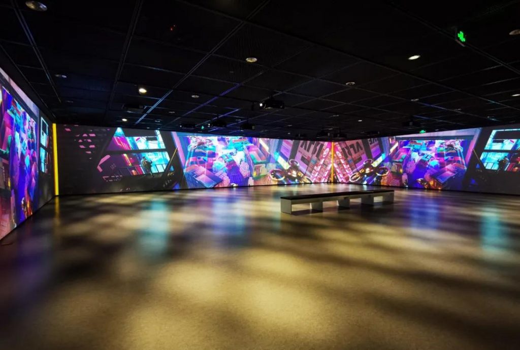 一進入博物館的印象大廳,由線路板與電子芯片構(gòu)成的裝置光影變幻、引人注目,賽博朋克既視感撲面而來。